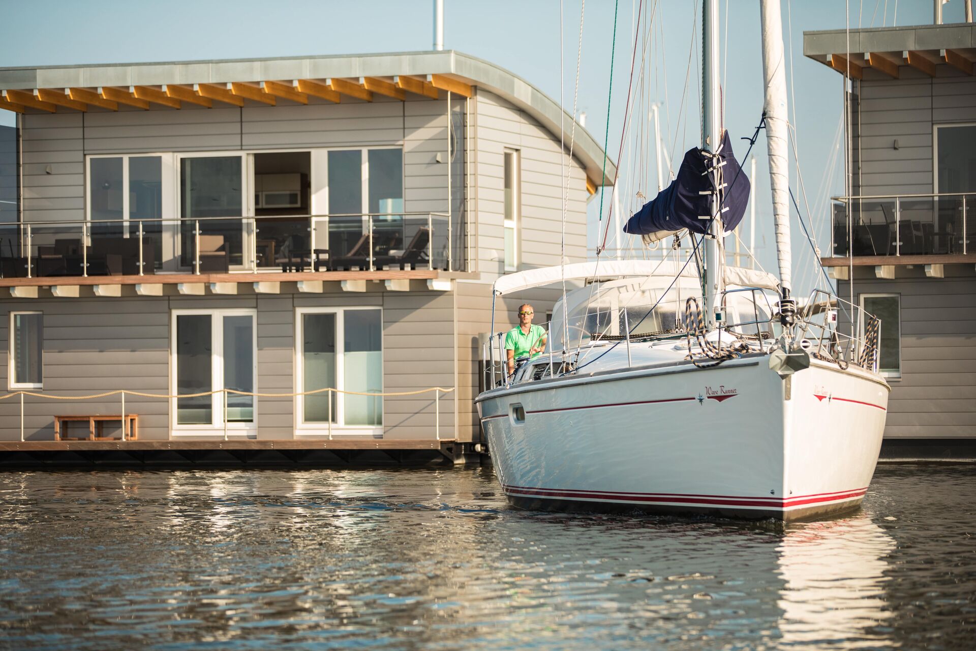 Urlaub. Erleben. Hausbootferien Der Rundherum-Ausblick: Natur. Den hat man nur auf dem Wasser oder in einen unser Floating Houses, Hausbooten oder Schwimm-PODs. Diese verbinden den angenehmen Komfort eines fest stehenden Hauses mit dem schönen Gefühl, leicht auf den Wellen gewiegt zu werden.