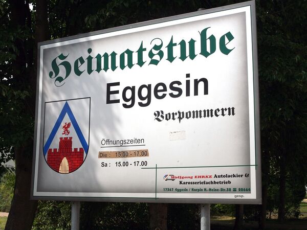 Erstmalig urkundlich erwähnt wurde Eggesin im Jahr 1216, als die Herzöge Bogislaw II und Kasimir II von Pommern den Ort dem Kloster Grobe auf der Insel Usedom schenkten. Damals hieß die einst slawische Siedlung noch »Gizin«. Erst 1296 stellte man das »E« voran und es entwickelte sich das Wort »Egezyn«.