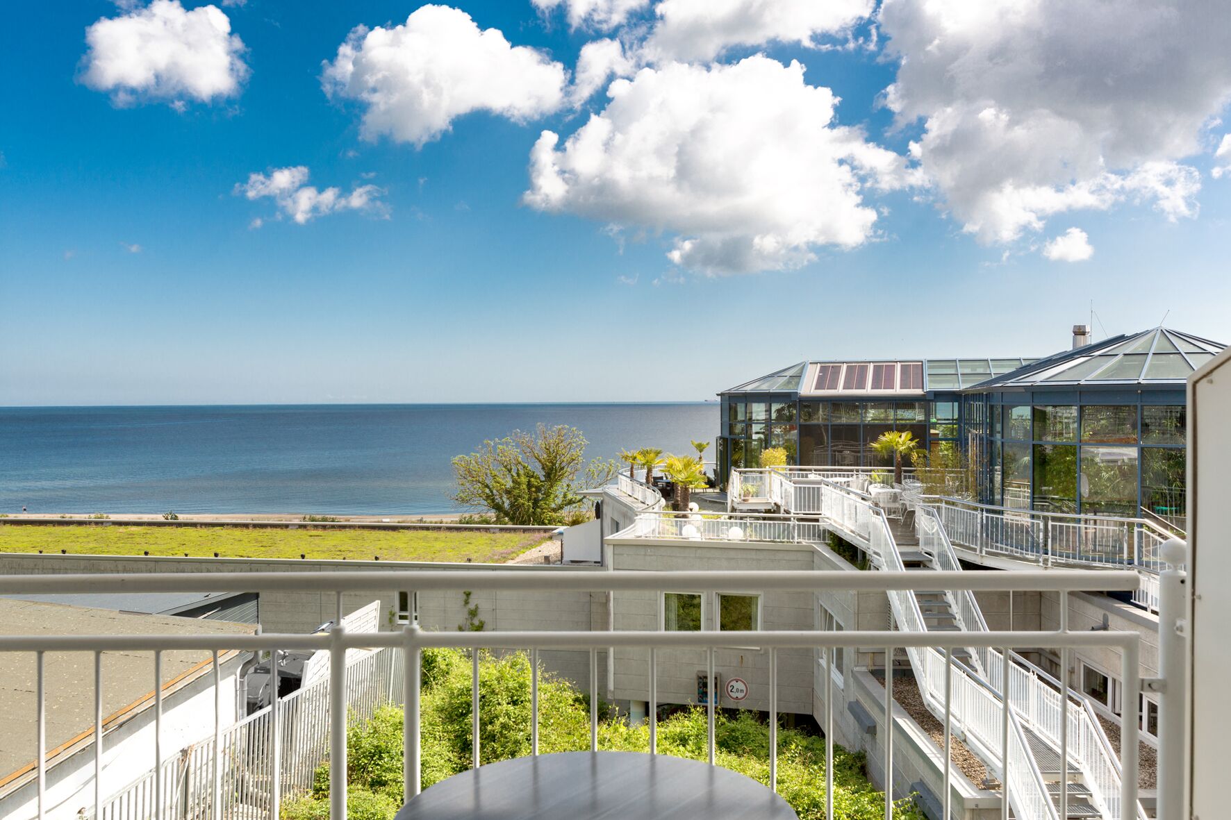 Erholung finden Sie im großzügigen Beauty- und Wellnessbereich Vitalgarten mit Thalasso-Plus-Zentrum auf über 1.400 m². Zur Ausstattung gehören ein Schwimmbad, ein beheizbarer Außenpool, verschiedene Saunen sowie ein lichtdurchfluteter Ruhebereich mit Ostseeblick. Ein kostenfreies Aktivprogramm mit Aquafit-Kursen, Ortsrundgängen und Yoga-Stunden für Hausgäste rundet das Angebot ab und bietet einen idealen Ausgleich zum Alltag.
