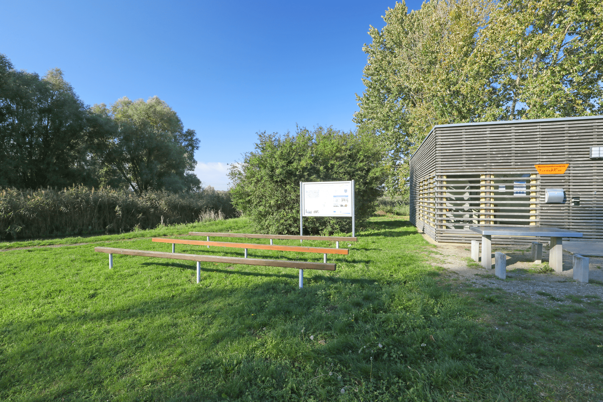 Über die Klosterstraße erreicht man den idyllisch gelegenen Wasserwanderrastplatz, der nur rund 5 Gehminuten von Pasewalks Zentrum entfernt liegt. Hier findet man ein ruhiges Plätzchen für die Übernachtung im eigenen Zelt. Es gibt Duschen und WCs, eine Rastmöglichkeit sowie eine Schautafel mit Informationen zur Region. In direkter Nachbarschaft befindet sich der KunstgARTen Pasewalk.