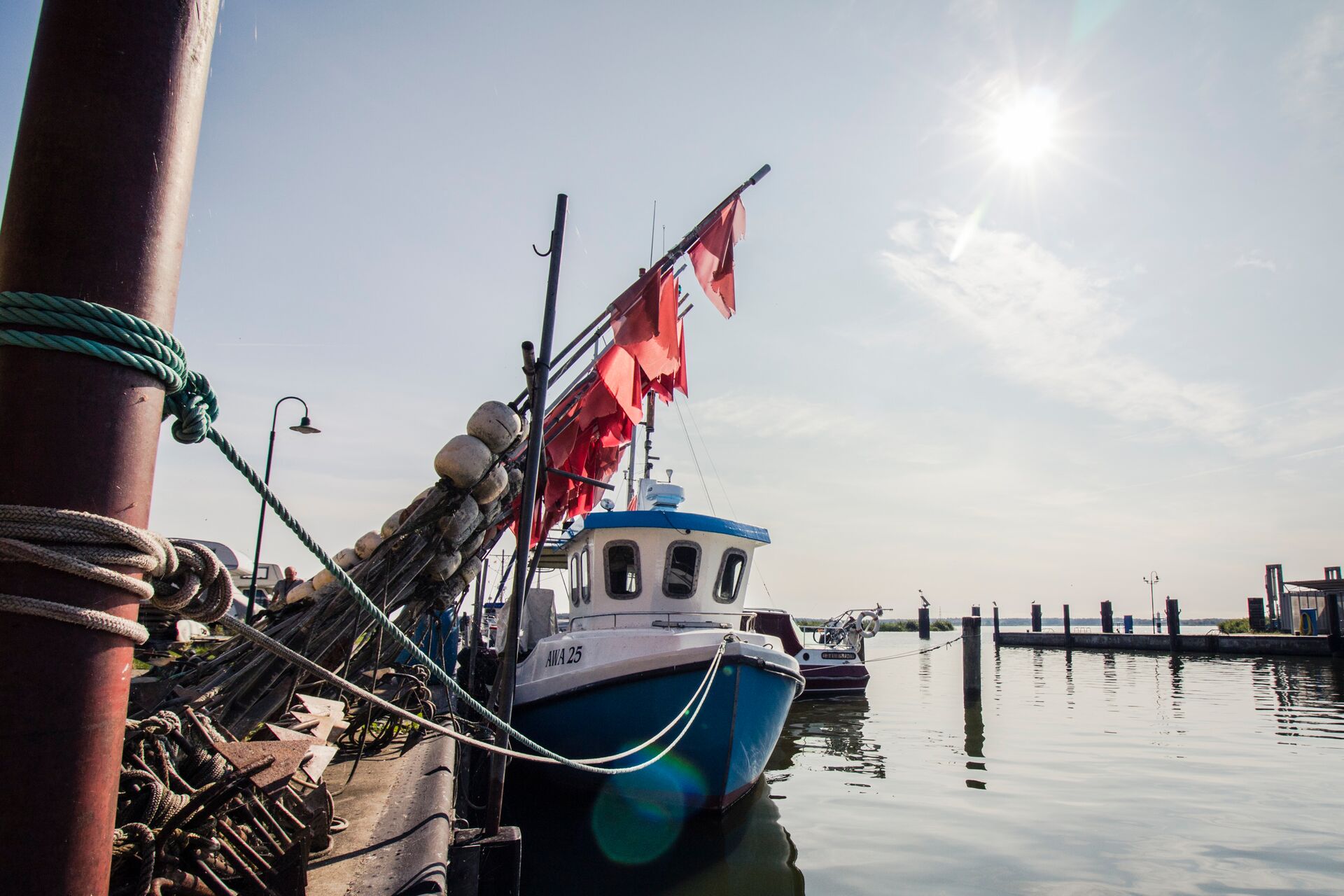 Wunderschöner kleiner Stellplatz am Stettiner Haff mit Sicht auf Haff und Fischereihafen.
