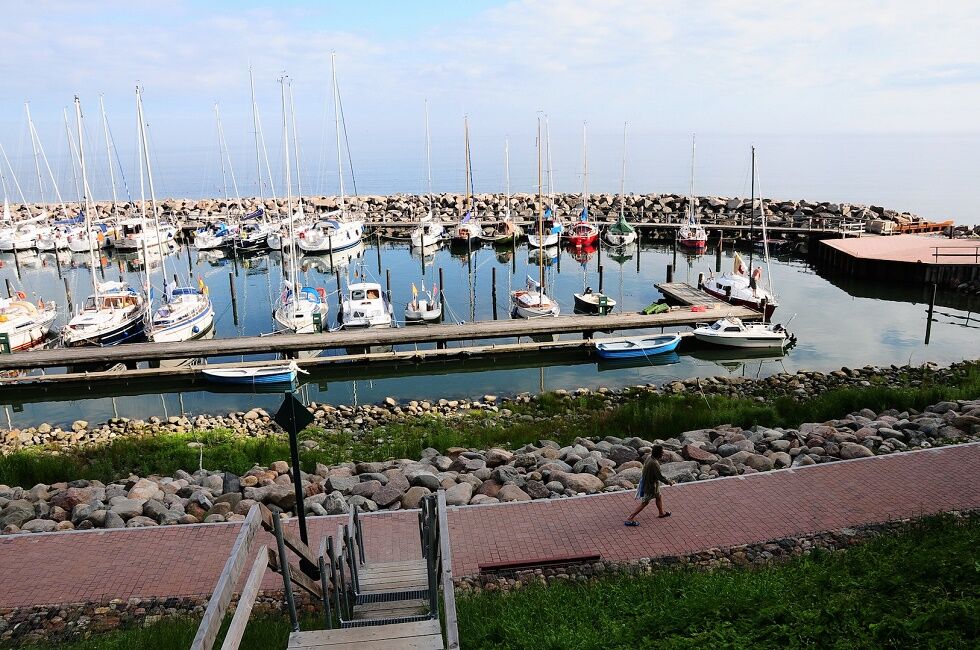 Der Yachthafen in Lohme auf Rügen ist ein idyllischer, kleiner Hafen mit Blick auf das Kap Arkona.