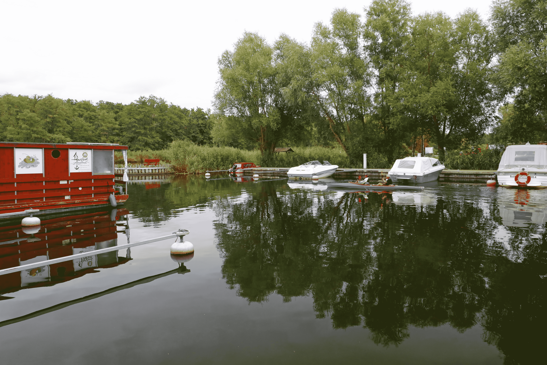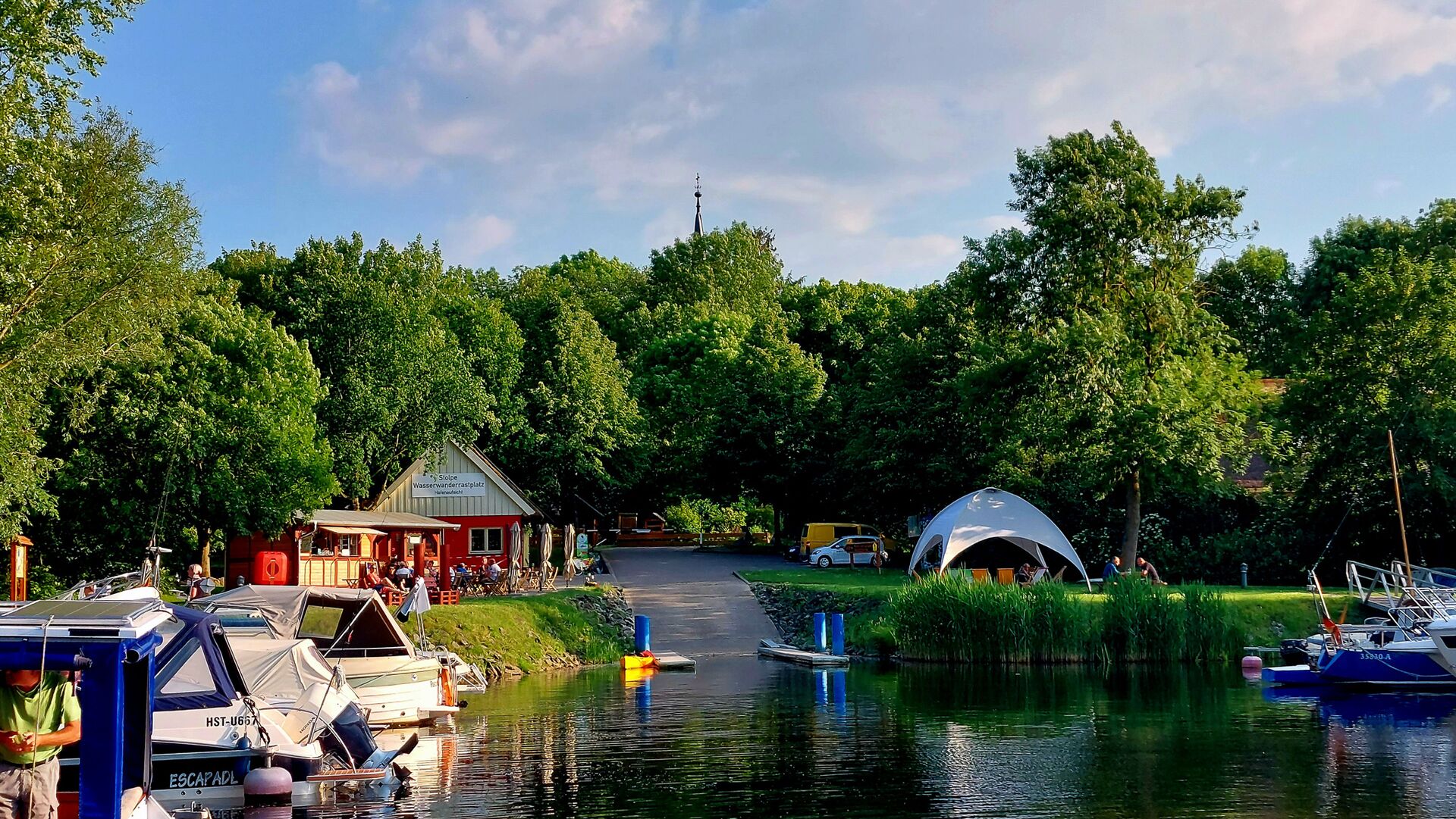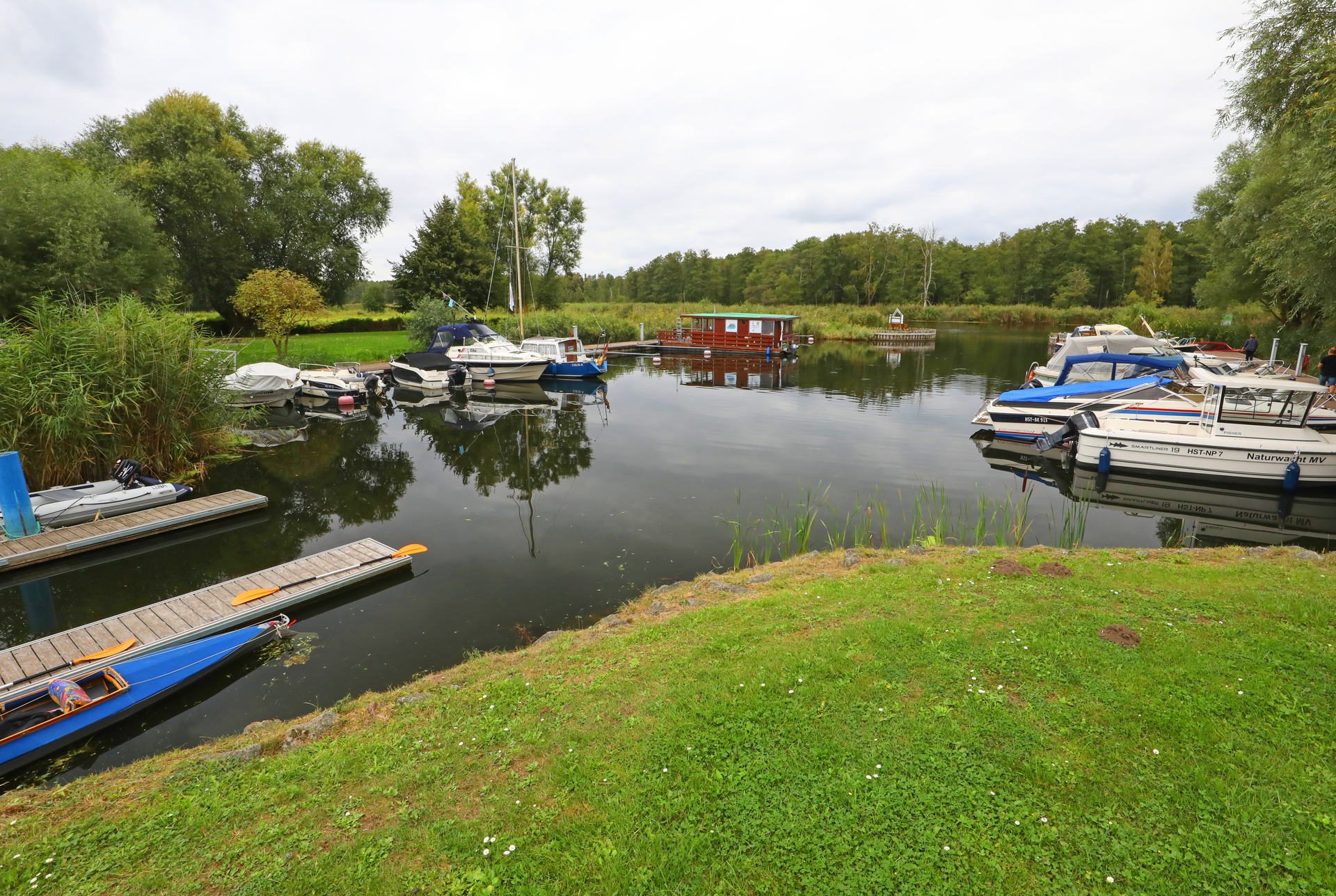 Wasserwanderrast- und Zeltplatz für Kanufahrer und 26 Liegeplätze für Haus und Sportboote. Eine Slipanlage ist verfügbar, ebenso wie ein Sanitärgebäude mit Duschen und Abwaschraum. Ein Imbiss mit Sonnenterasse und Hafenblick bietet täglich Speisen, Eis und Getränke an.