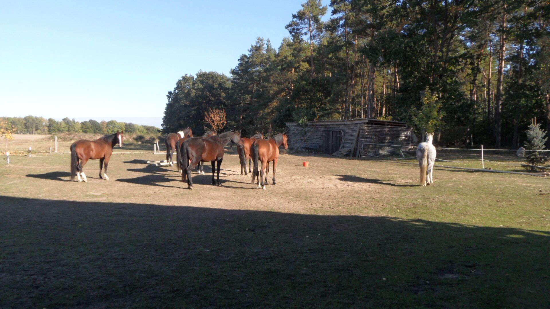 Für unsere Gäste haben wir zwei Gästezimmer mit eigenem Badezimmer im oberen Stockwerk - mit wunderbarem Blick auf die Koppeln. Einen Großraum mit Kamin und offener Küche, den Garten und die Veranda dürfen Sie mitbenutzen. Auch ein Zeltplatz oder ein Stellplatz für Camper wäre vorhanden. Für die Pferde bieten wir ein Paddock oder auch eine Box mit Wasser und Heu.