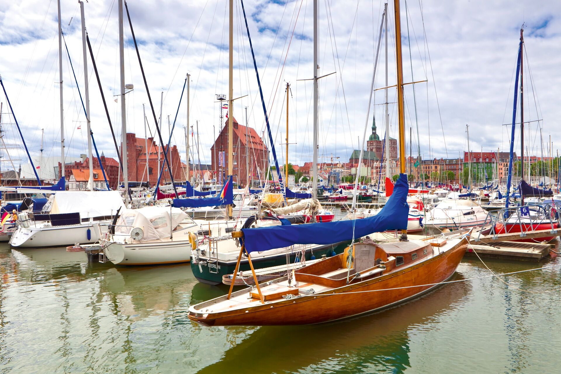 Bereits bei Ihrer Anreise in die Citymarina können Sie die historische Silhouette der Stadt am Strealsund erblicken. Die UNESCO Weltkulturerbe-Stadt präsentiert sich mit hanseatischer Backsteingotik, schwedischen Relikten und imposanter barocker Architektur. Weit weniger als eine Seemeile von der Altstadt entfernt, haben Sie Ihren Liegeplatz unmittelbar neben dem Traditionssegler GORCH FOCK I.