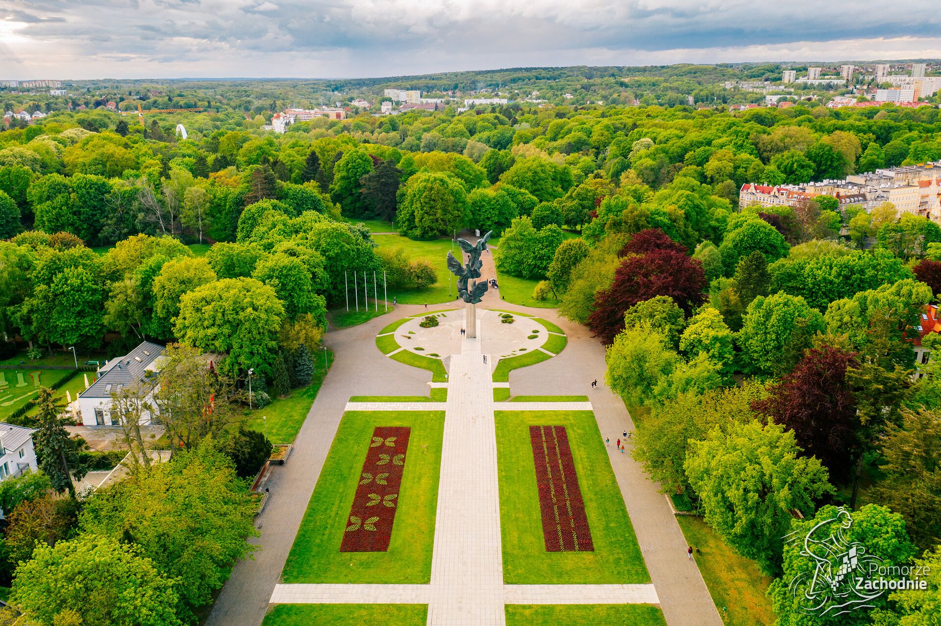 Die weitläufige Grünfläche entstand in den 1920er Jahren. An zwei Seiten der Anlage verlaufen Alleen mit Ahornblättrigen Platanen. Insgesamt 213 Bäume wachsen hier und stellen damit die polenweit größte Ansammlung dieser Baumart dar.
