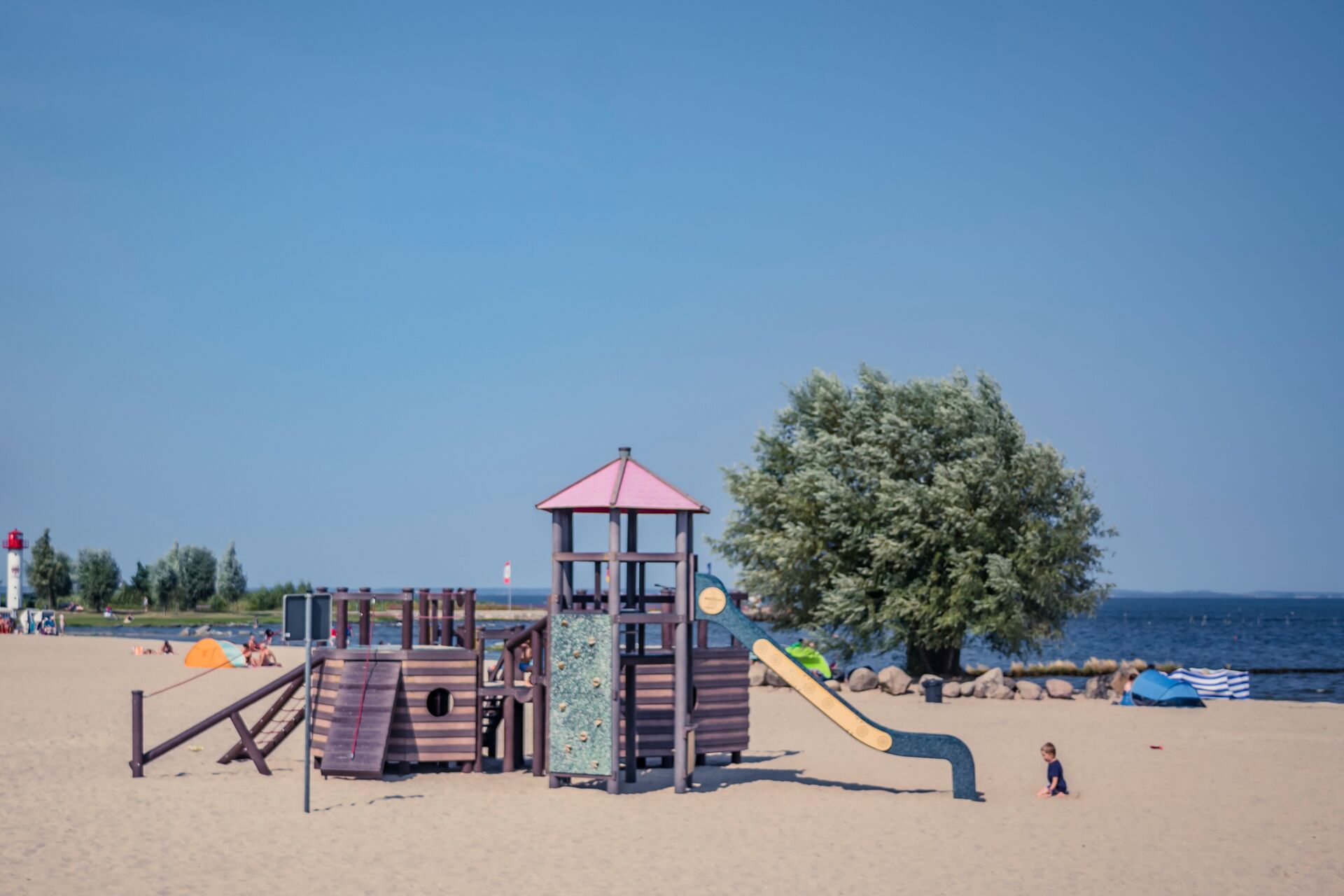 Seit 1926 lädt das Haffbad in Ueckermünde zum Baden, Planschen und Erholen am 800 Meter langen feinkörnigen Sandstrand ein. Der lange Flachwasserbereich ist ideal für einen Strandaufenthalt mit Kindern. Es gibt zwei Spielplätze sowie einen Hunde- und FKK-Strand.