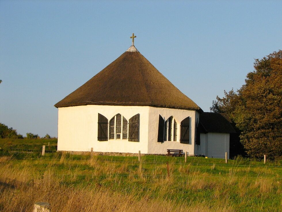Die achteckige Uferkapelle auf dem Hochufer von Vitt.