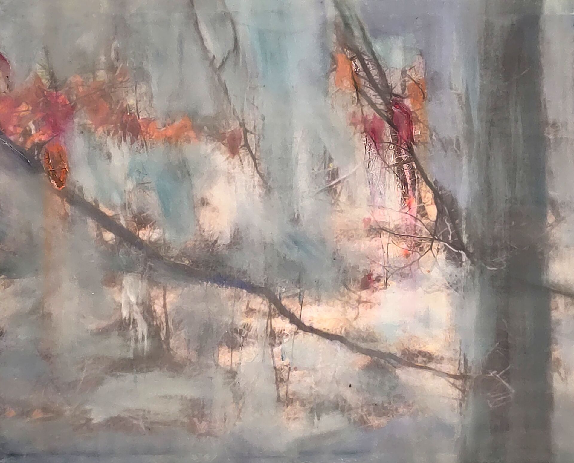 der Natur. Auf Papier und Leinwand entstehen gemalte Bilder, die das Gefühlte ausdrücken und dadurch eine Abstraktion erfahren.