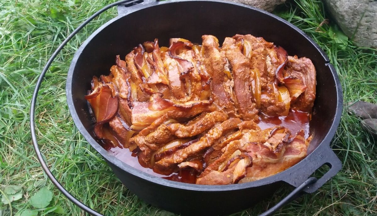 - Fleischgericht (Wildgulasch oder Schichtfleisch) im Dutch Oven